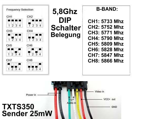 - Transmitter Frequenz: 5733-5866 Mhz; 8CH
